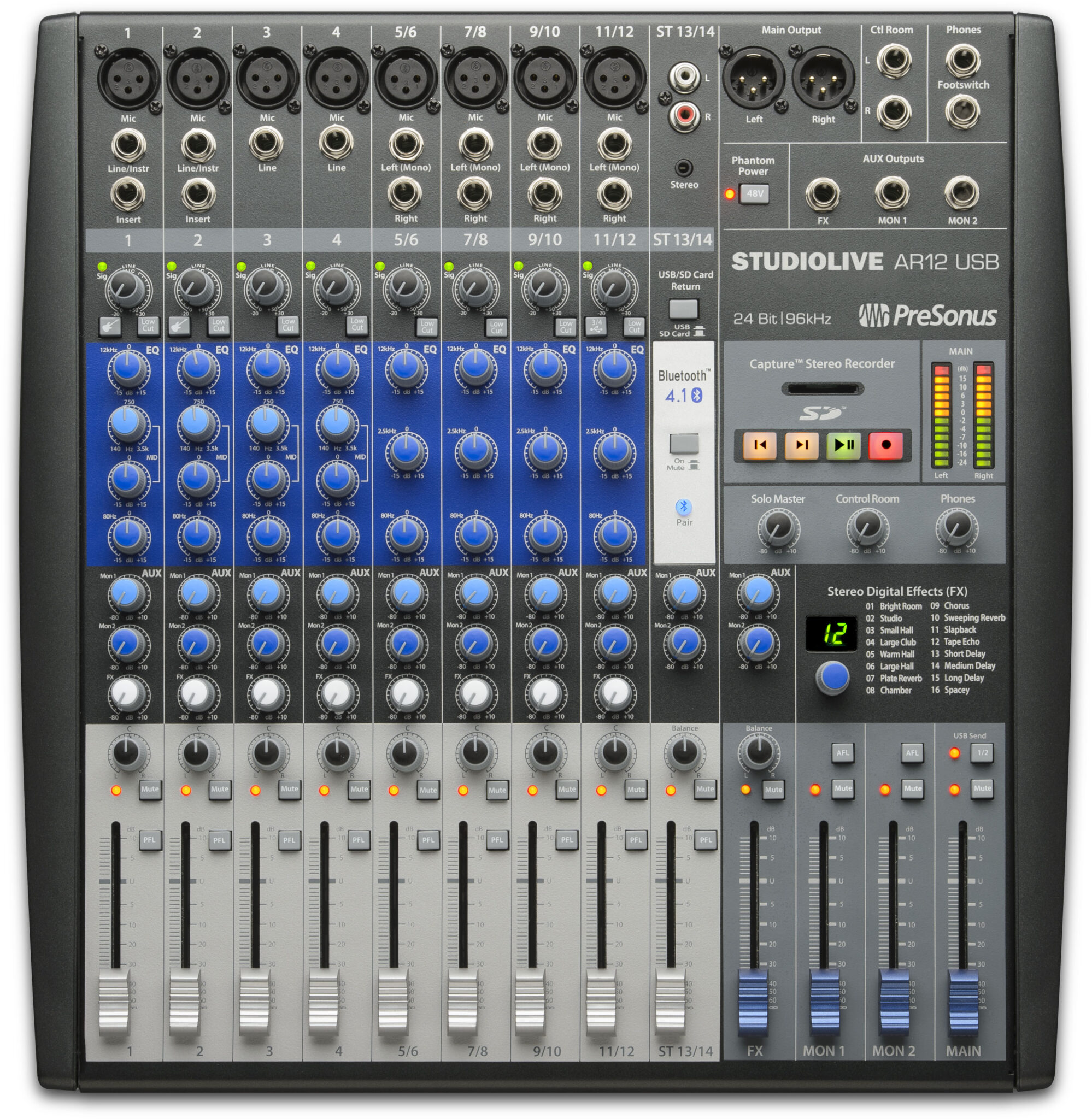 PreSonus anunció el lanzamiento de sus consolas de mezcla híbridas StudioLive AR USB. Ligeras, versátiles y con un completo conjunto de funciones, son mixers pensadas para músicos, con conexiones analógicas y herramientas digitales para utilizar tanto en estudio como en shows en vivo. La serie incluye tres modelos: la StudioLive AR16 USB de 18 canales, StudioLive AR12 USB de 14 canales y StudioLive AR8 USB de 8 canales respectivamente.