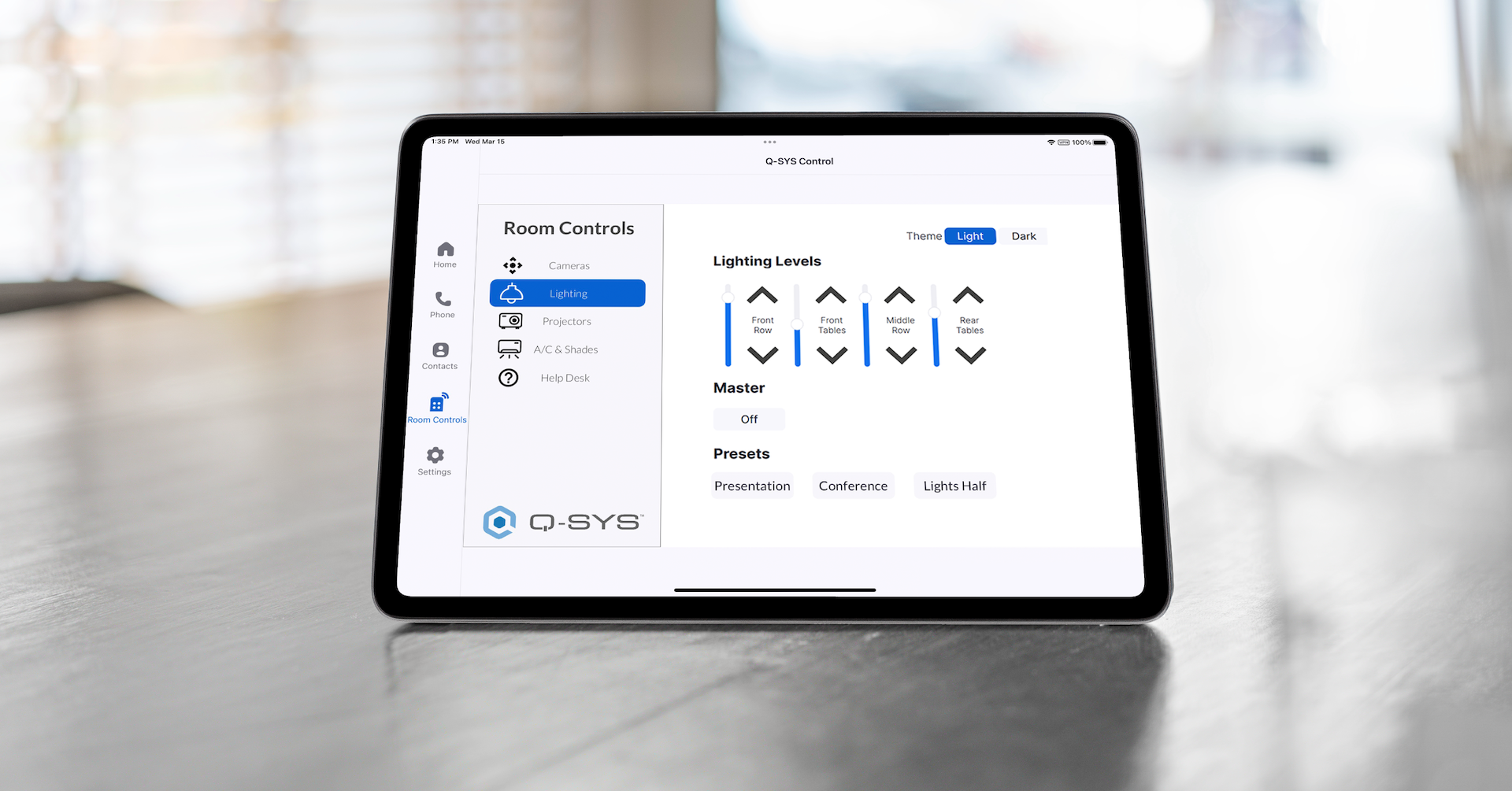 Esto mejora el controlador Zoom Rooms ya implementado en la sala con la capacidad de mostrar una interfaz de control de usuario (UCI) Q-SYS y permitir a los usuarios controlar sin esfuerzo los dispositivos y servicios de la sala conectados al procesador central Q-SYS, incluidas pantallas, iluminación, cortinas y HVAC.