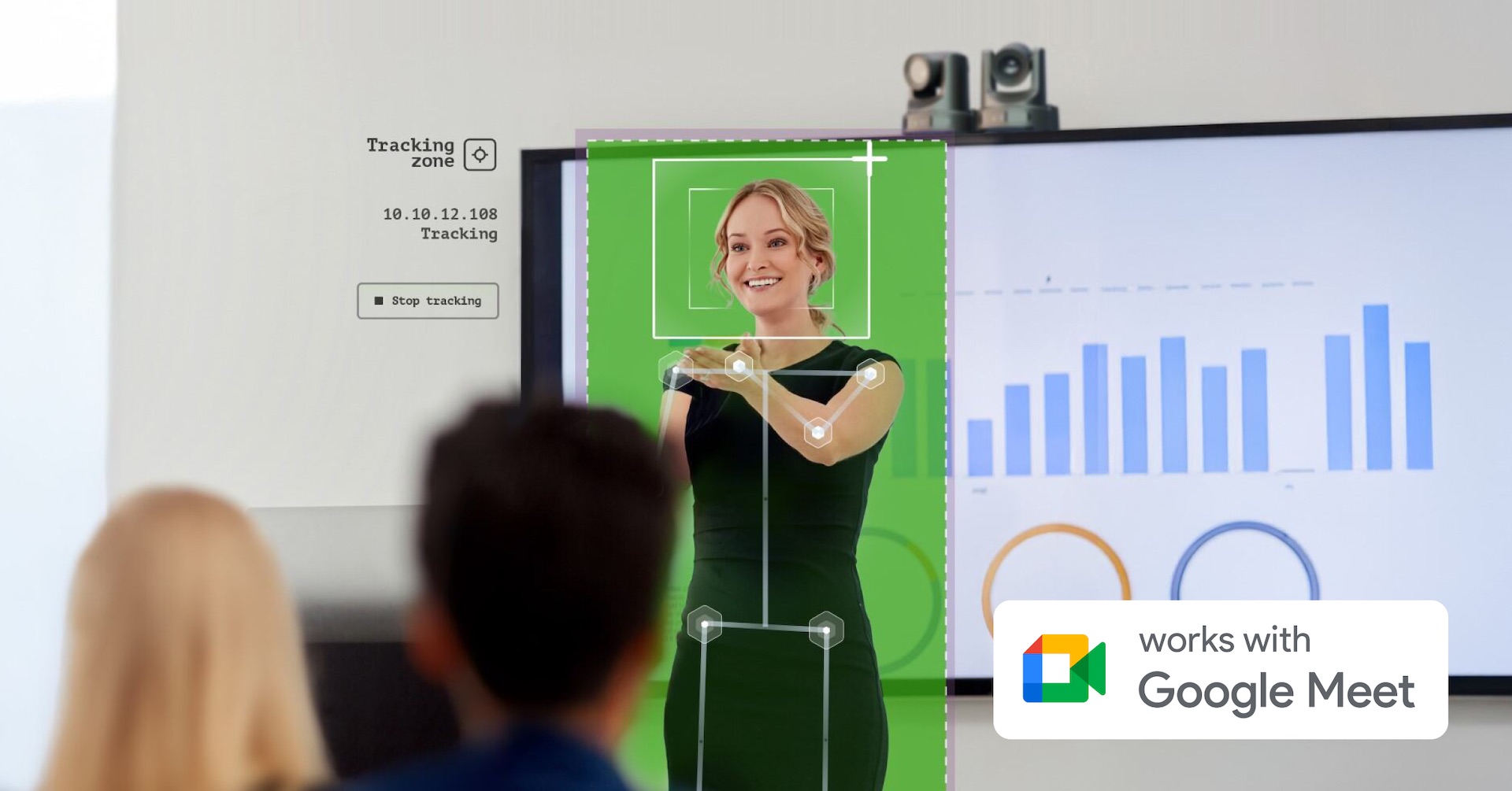 Mejora de las experiencias de reuniones para Google Meet con control de salas basado en la visión, que incluye seguimiento y cambio automáticos de cámaras