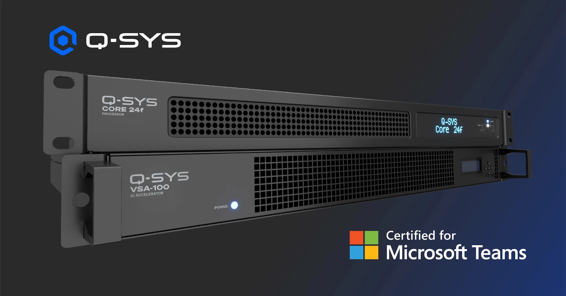 QSC®, líder del mercado en soluciones de audio, video y control, anunció que el procesador Q-SYS Core 24f y el acelerador de IA Q-SYS VisionSuite VSA-100 ya están certificados para Microsoft Teams, ampliando así la cartera de soluciones certificadas para Teams de Q-SYS.