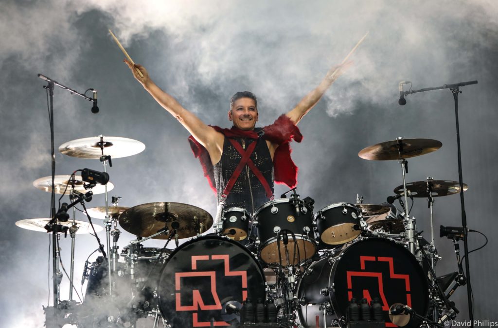 El kit DW Jazz Series de Christoph Schneider es la pieza central del imponente escenario industrial de múltiples niveles de Rammstein para su ya agotada gira europea 2019. Él anuncia el inicio del espectáculo con unos redobles de tambor resonantes que provocan una explosión masiva que libera humo a través del escenario.