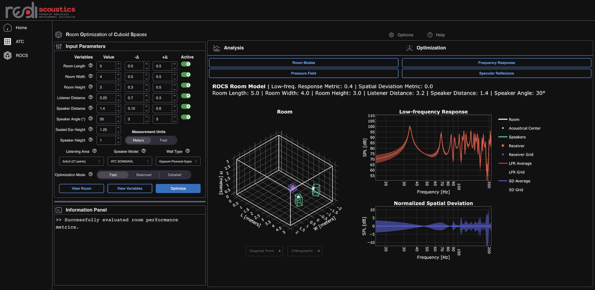 Un conjunto de herramientas de medición y predicción diseñadas para determinar la posición óptima de los altavoces y la escucha en cualquier espacio cuboide.