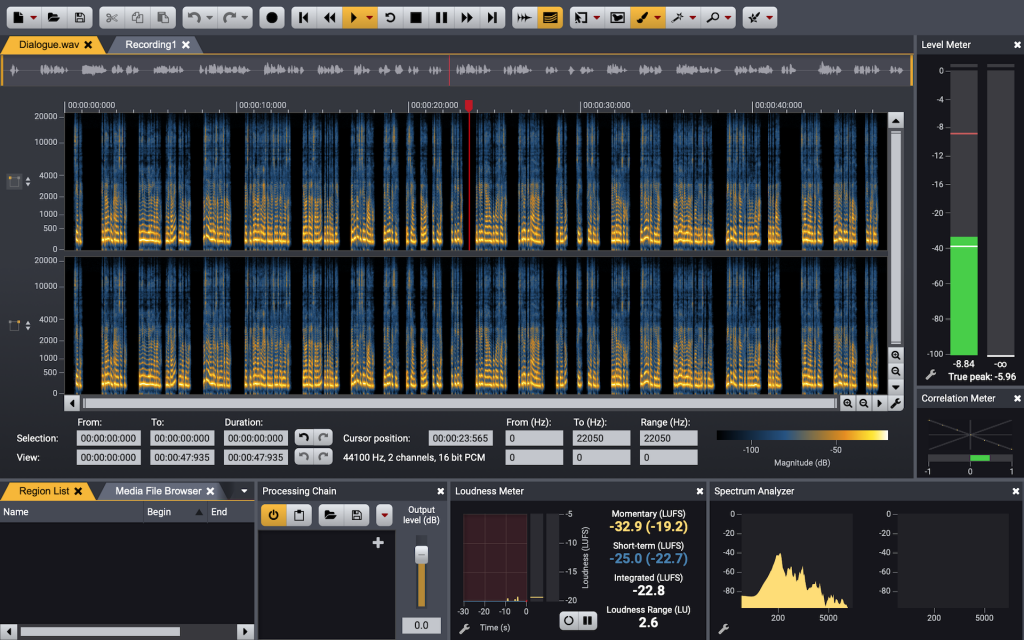 Con el Mastering Suite 2, tendremos acceso a un compresor/expansor y Gate, un compresor multibanda con todas las funciones, un impresionante ecualizador paramétrico y un Dither, con lo que podremos realizar las tareas más comunes para aplicaciones de masterización con gran eficacia. También cuenta con varias opciones de medición, incluidas las normas EBU R128 y ATSC A/85 para satisfacer las necesidades de la industria, además de ofrecernos un limitador True Peak.