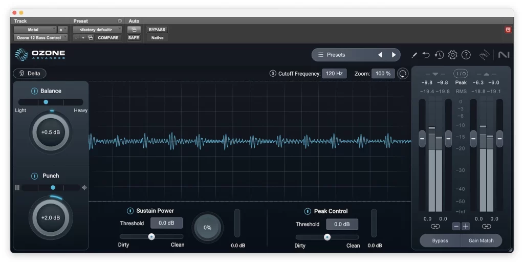Bass Control nos permitió homogeneizar pistas con bajos mal controlados o bombos inconsistentes y en masters más orientados a streaming, la combinación Bass Control + IRC 5 nos arrojó un sonido potente sin pérdida de claridad.