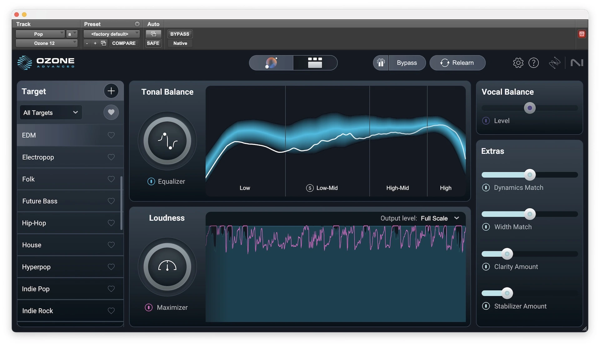 Combinado con Bass Control, por ejemplo, se obtiene una base de graves sólida sin sacrificar espacio para el resto de la mezcla. La coherencia entre módulos es uno de los puntos más logrados de Ozone 12: cada elemento está diseñado para trabajar en conjunto dentro de una misma cadena de sonido.