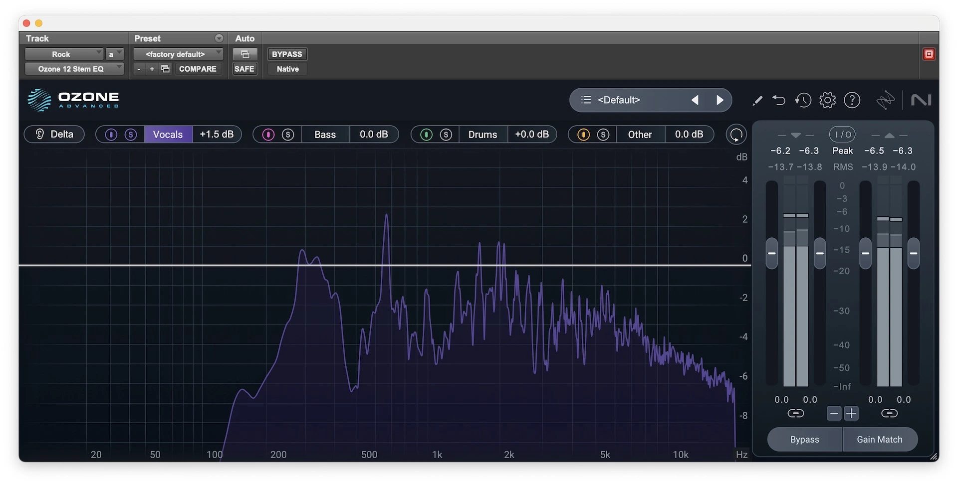 Este módulo analiza la mezcla y la divide automáticamente en cuatro componentes principales: voces, bajo, batería y otros instrumentos. A partir de esa división, podremos aplicar ecualización independiente sobre cada uno de estos grupos, casi como si tuviésemos los stems reales. Gracias a este nuevo módulo, ya no sería necesario tener acceso a la sesión original para hacer correcciones como por ejemplo, una voz opaca, un bajo embarrado o una batería demasiado agresiva.