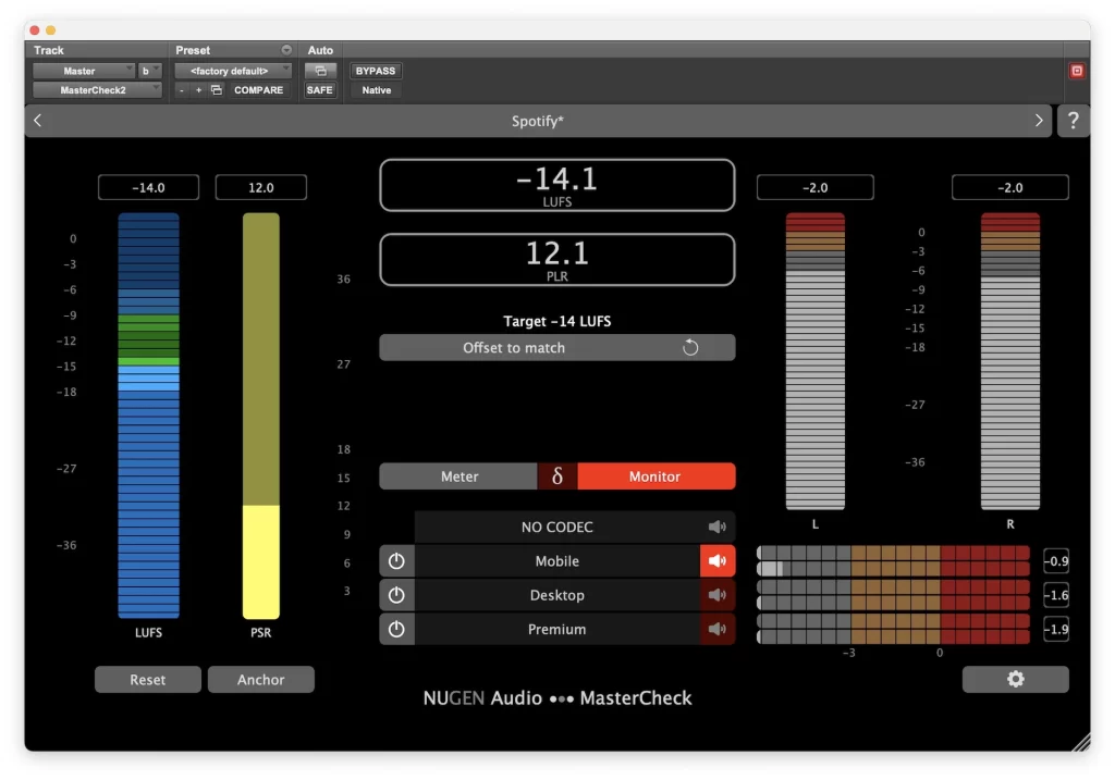 MasterCheck 2 fue diseñado para escuchar en tiempo real cómo la sonoridad y la compresión de datos de distintos códecs impactan sobre el sonido final de nuestra mezcla o master antes de que esta salga al público. Con esta útil herramienta, podemos identificar problemas comunes como pérdida de dinámica, artefactos de codificación o niveles inconsistentes entre plataformas, sin necesidad de exportar y subir la pista a cada servicio manualmente.