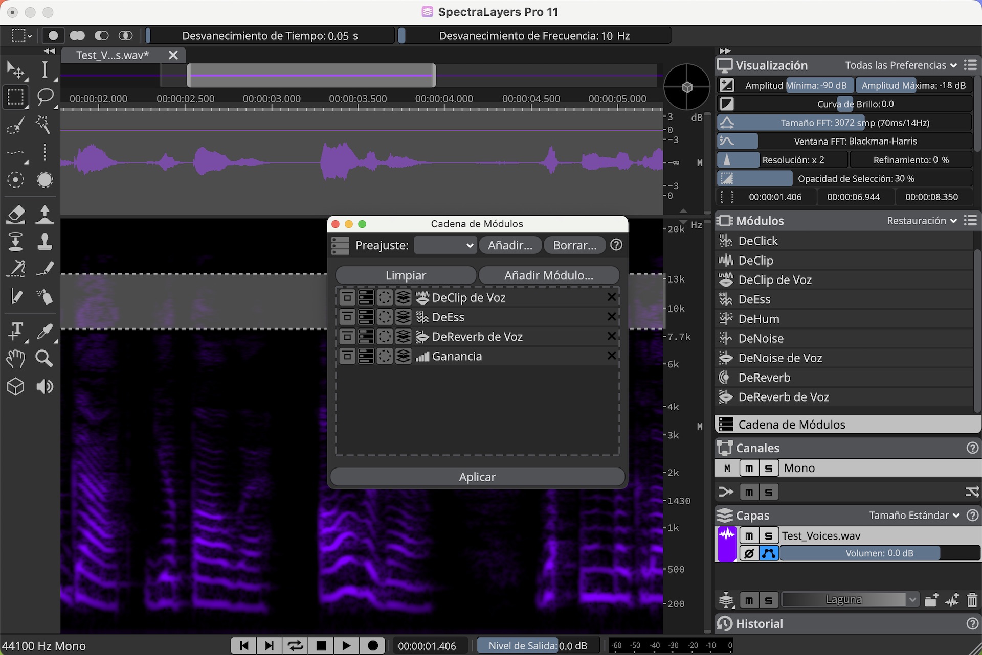 Debajo, nos encontramos con la pestaña Módulos, donde todos los procesos se han fusionado y ahora contamos con un filtro por categorías como Desmezclar, Utilidades y Restauración o incluso, podemos crear nuestros propios filtros personalizados. Además, todos los módulos de Restauración incluyen en su nombre “De”, como por ejemplo; DeHum, DeNoise o DeReverb para identificarlos y reagruparlos fácilmente.