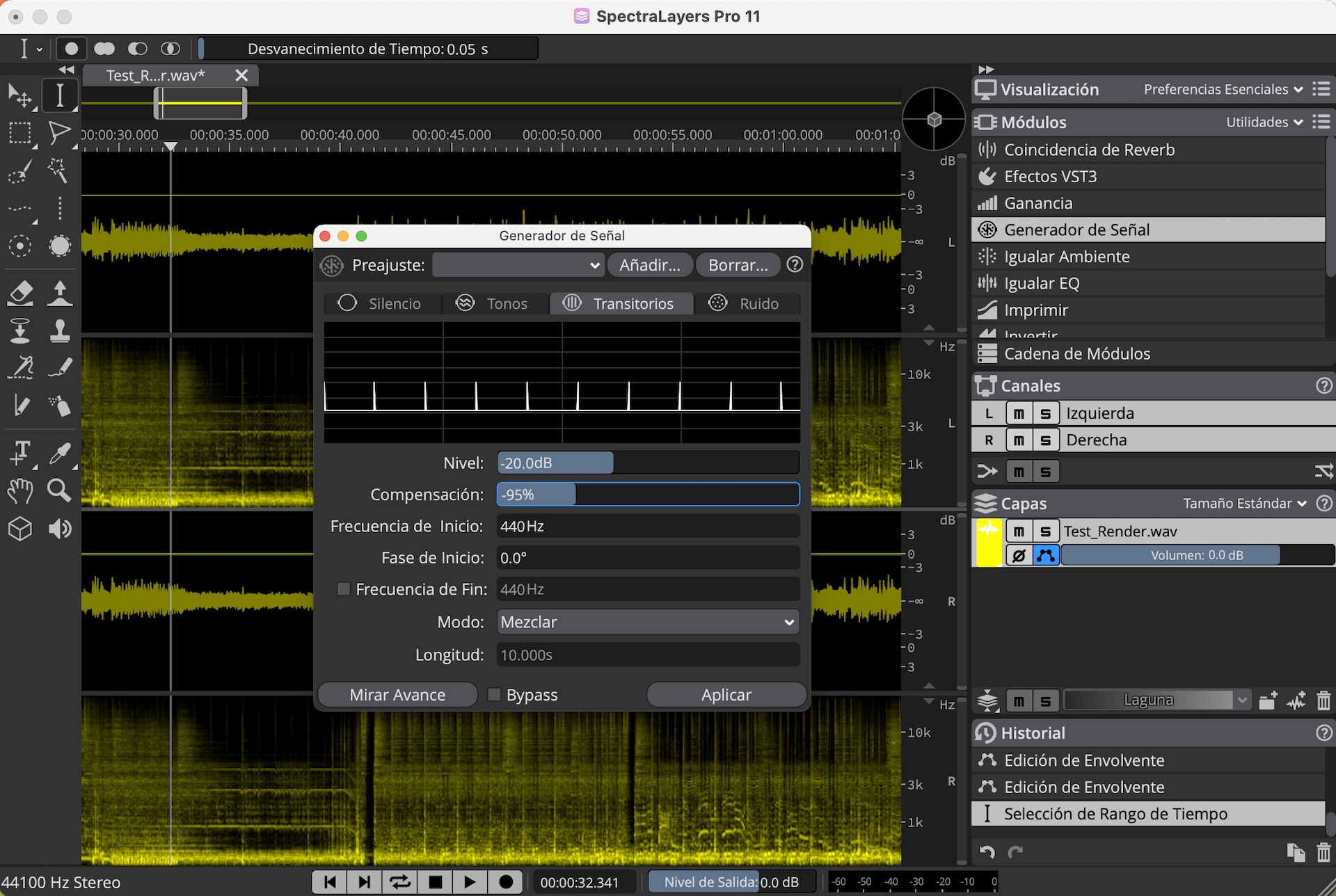 El nuevo módulo Generador de Señal combina generadores de Silencio, Tonos, Transitorios y Ruido, cada uno con diferentes parámetros ajustables que podremos Reemplazar, Mezclar o Insertar, en la pista de forma dinámica. El módulo ofrece muchas posibilidades y tiene potencial como herramienta creativa para diseño sonoro.