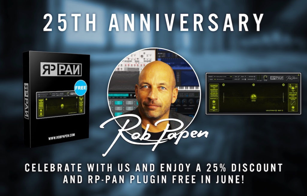 Rob Papen Inspiration Soundware se enorgullece de promover su 25° aniversario como desarrollador galardonado de instrumentos virtuales y plugins de efectos al obsequiar generosamente RP-PAN a cualquier persona de forma gratuita, como un plugin completamente nuevo que ofrece efectos panorámicos creativos, además de ofrecer un 25% de descuento a cualquiera de sus otros plugins y actualizaciones asociadas compradas durante junio.
