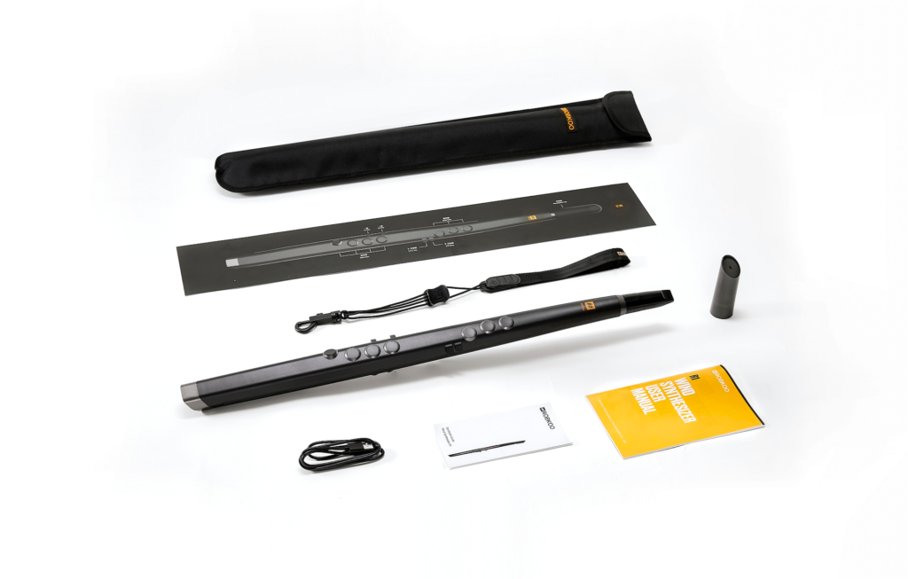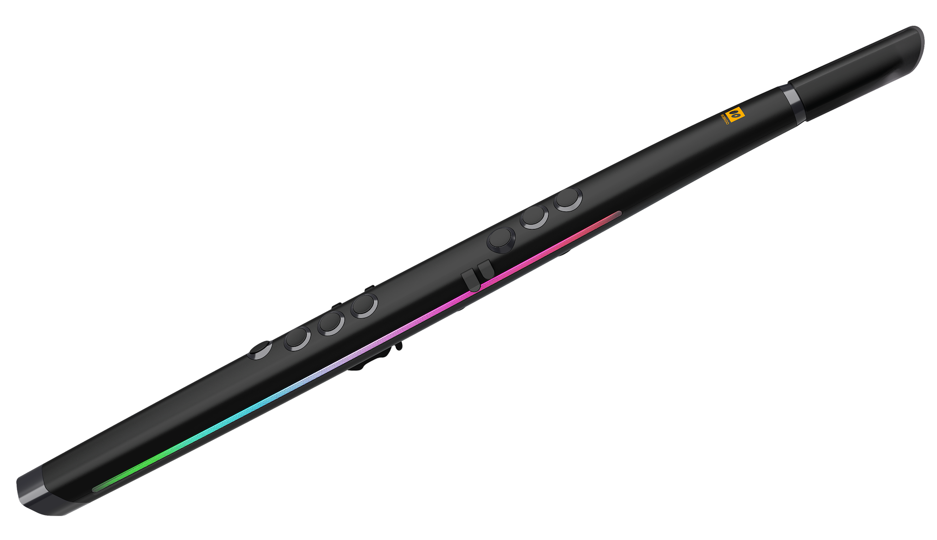 Ya sea de forma inalámbrica o conectado por cable a un dispositivo aplicable, al permitir también el portamento y el cambio de programa junto con el control de la respiración, como su nombre lo indica, Wind Synthesizer R1 también es un controlador MIDI capaz que envía mucho más que solo información de notas. Curiosamente, también es compatible con la entrada MIDI a través de USB MIDI (Tipo-C) y Bluetooth (BLE MIDI). No está mal para un dispositivo liviano (450 g) con 67 cm (largo), 4 cm (ancho) y 5 cm (alto). Sin embargo, su diseño delgado desmiente su impresionante especificación, que también admite una salida de auriculares TRS de 3,5 mm, una salida de audio TRS de 6,35 mm y un puerto USB tipo C. Pero aún mejor, Wind Synthesizer R1 cuenta con un tiempo de funcionamiento de la batería (2600 mAh) de seis horas (con las barras de luz RGB en funcionamiento), que se extiende a 10 horas (con las barras de luz RGB apagadas).