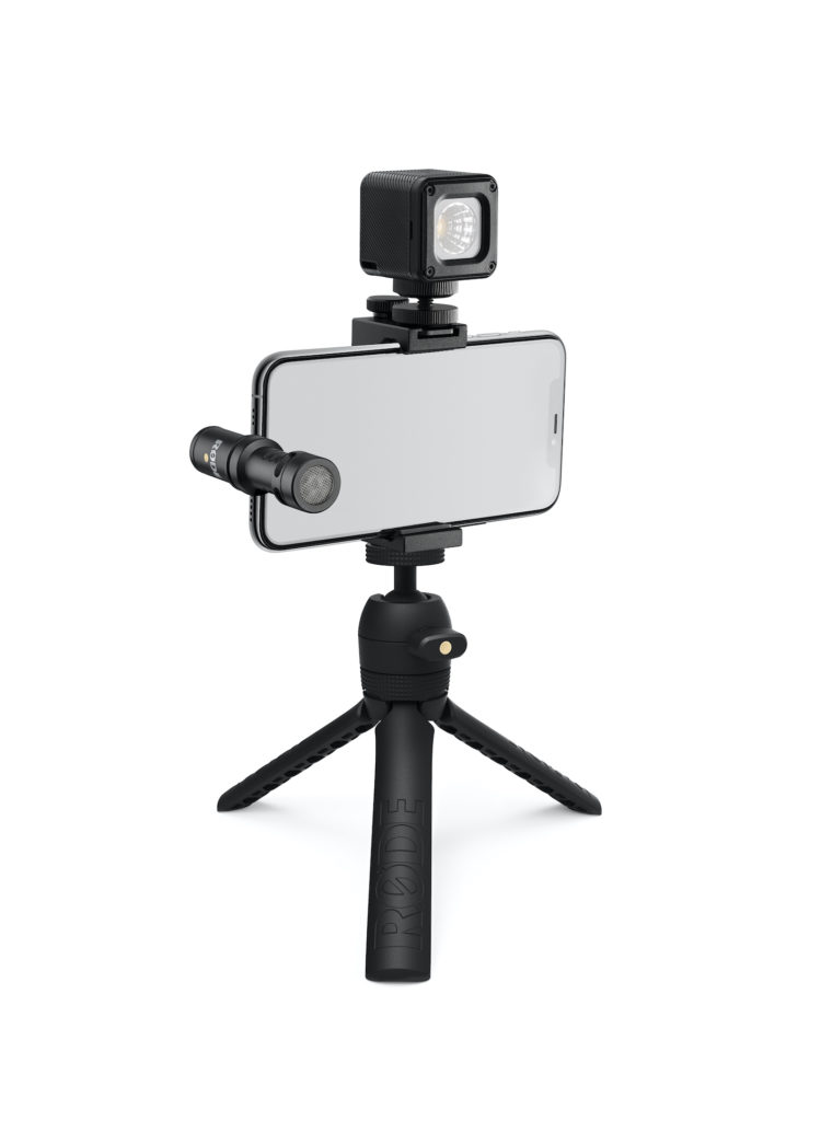 - Kit de filmación móvil todo en uno que incluye un RØDE VideoMic, Tripod 2, SmartGrip, MicroLED y accesorios
