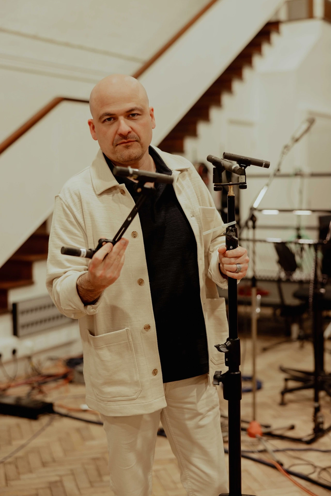 “Es una sala tan clásica y la has escuchado en tantas grabaciones increíbles, así que quieres hacerle justicia. Teníamos algunos arreglos oscuros que queríamos grabar allí y también sentir la propia cámara. Schoeps ofrece varios de sus micrófonos en configuraciones inmersivas, así que utilizamos un sistema de 8 micrófonos similar al ORTF-3 para lograr lo que buscábamos”.