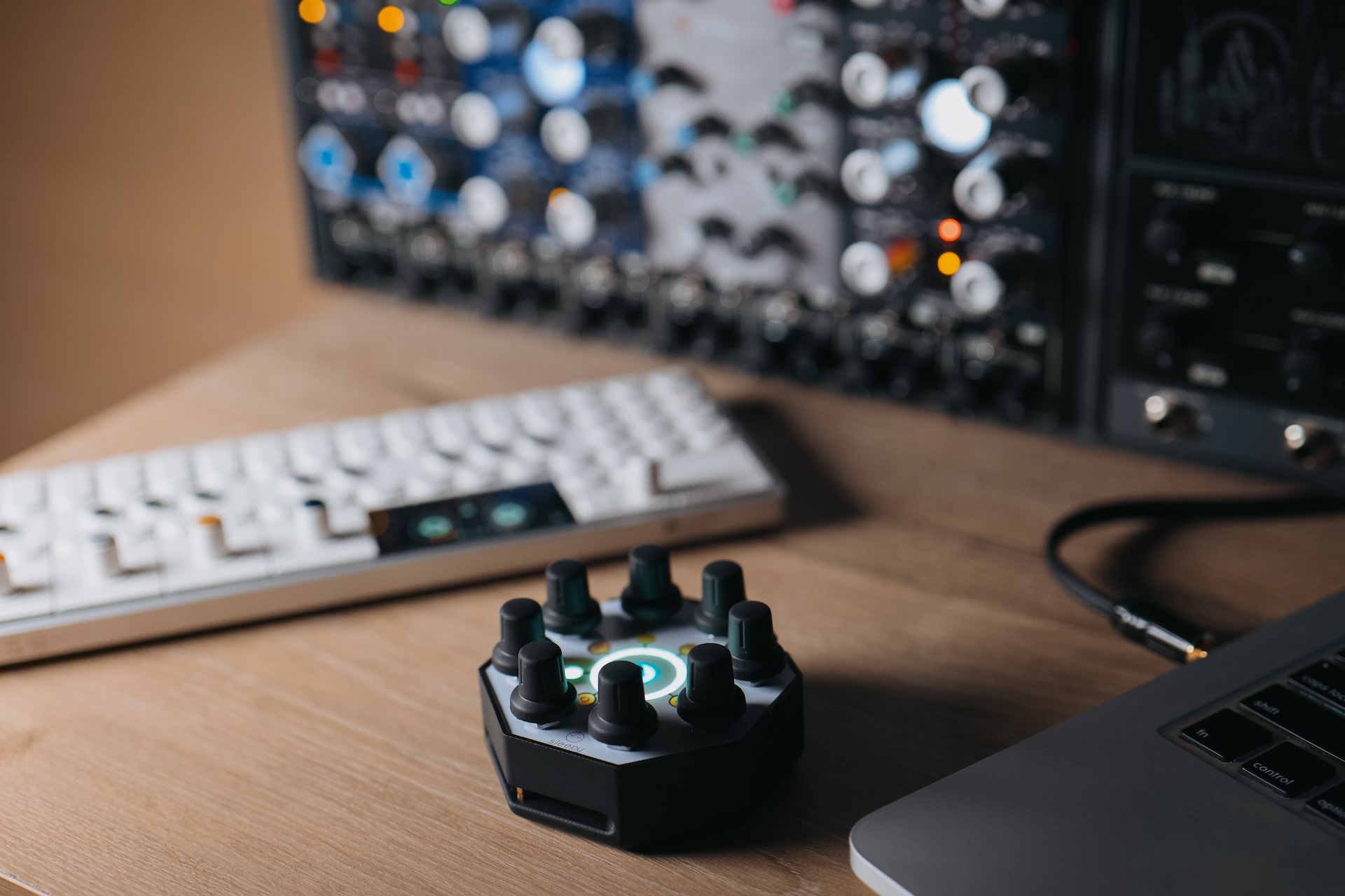 Mezzz de Sleepy Circuits es una herramienta audiovisual portátil inalámbrica para crear efectos visuales impresionantes con capacidades de control MIDI aplicativo. Cuenta con ocho perillas táctiles de precisión que pueden manipular más de 2000 parámetros MIDI CC, lo que permite a los músicos explorar una amplia gama de paisajes sonoros sin esfuerzo, especialmente cuando se utilizan efectos compatibles con MIDI como el H90 de Eventide. Su diseño compacto, capacidades inalámbricas y panel basado en LED hacen que Mezzz sea perfecto tanto para presentaciones en vivo como para sesiones de estudio.