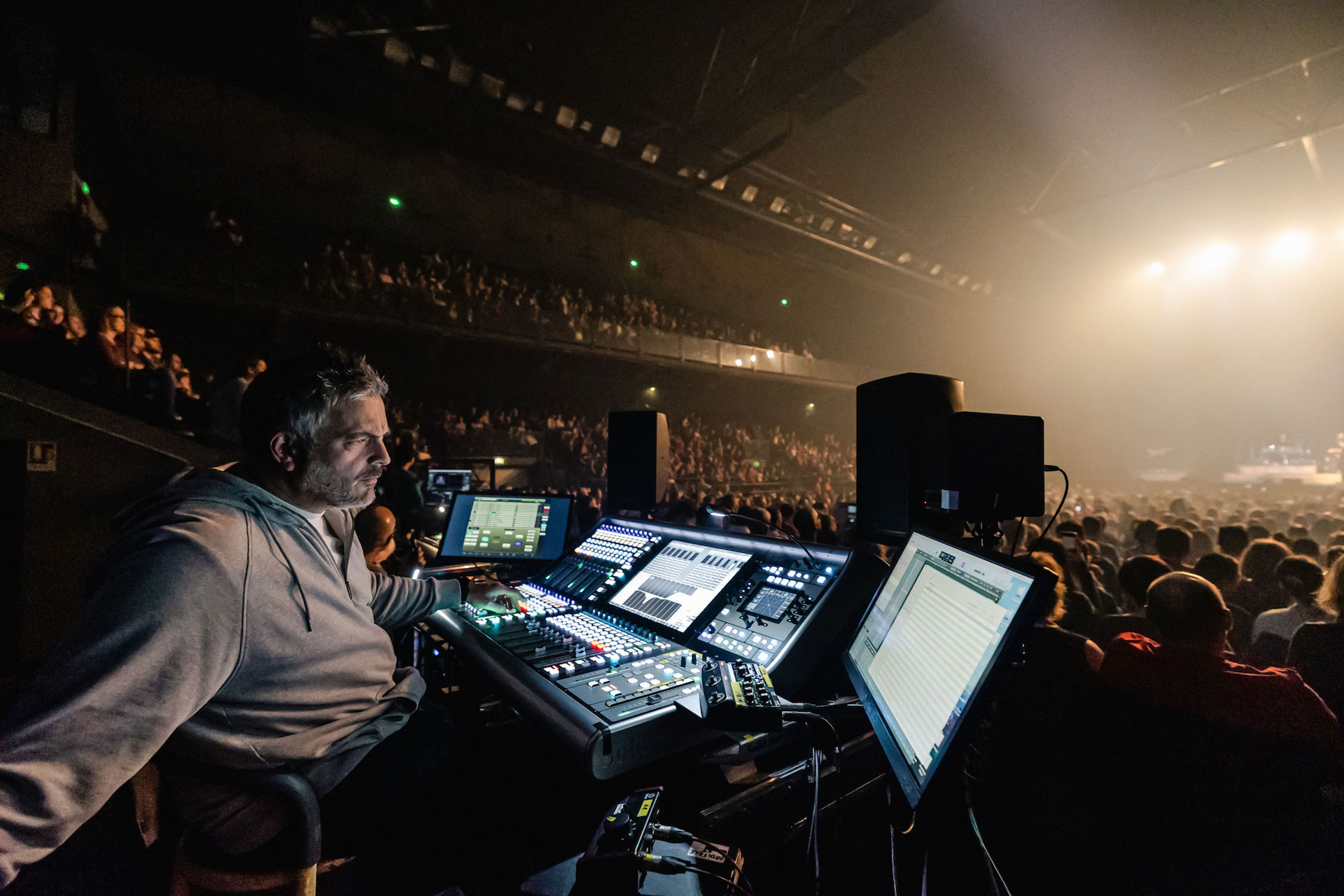 Re\Tour fue la primera experiencia de Herceg con una L550 Plus, que fue suministrado por la casa de alquiler belga DEE Sound & Light. Pero él no es ajeno a las consolas SSL Live, las ha estado usando desde 2016, cuando comenzó a trabajar con Amir, un artista muy conocido entre los fanáticos de la música de habla francesa a través de su participación en el Festival de la Canción de Eurovisión y la versión televisiva francesa de The Voice. En la gira anterior de Amir, Herceg sacó una consola L200 y también utilizó mesas L200 y L300 en giras con varios artistas, incluido el dúo de folk-pop Lilly Wood & The Prick. Para una gira de 2020 con el cantautor Louis Chedid, dice: “Compré una L100 y yo era el único hombre en Francia que tenía una”.