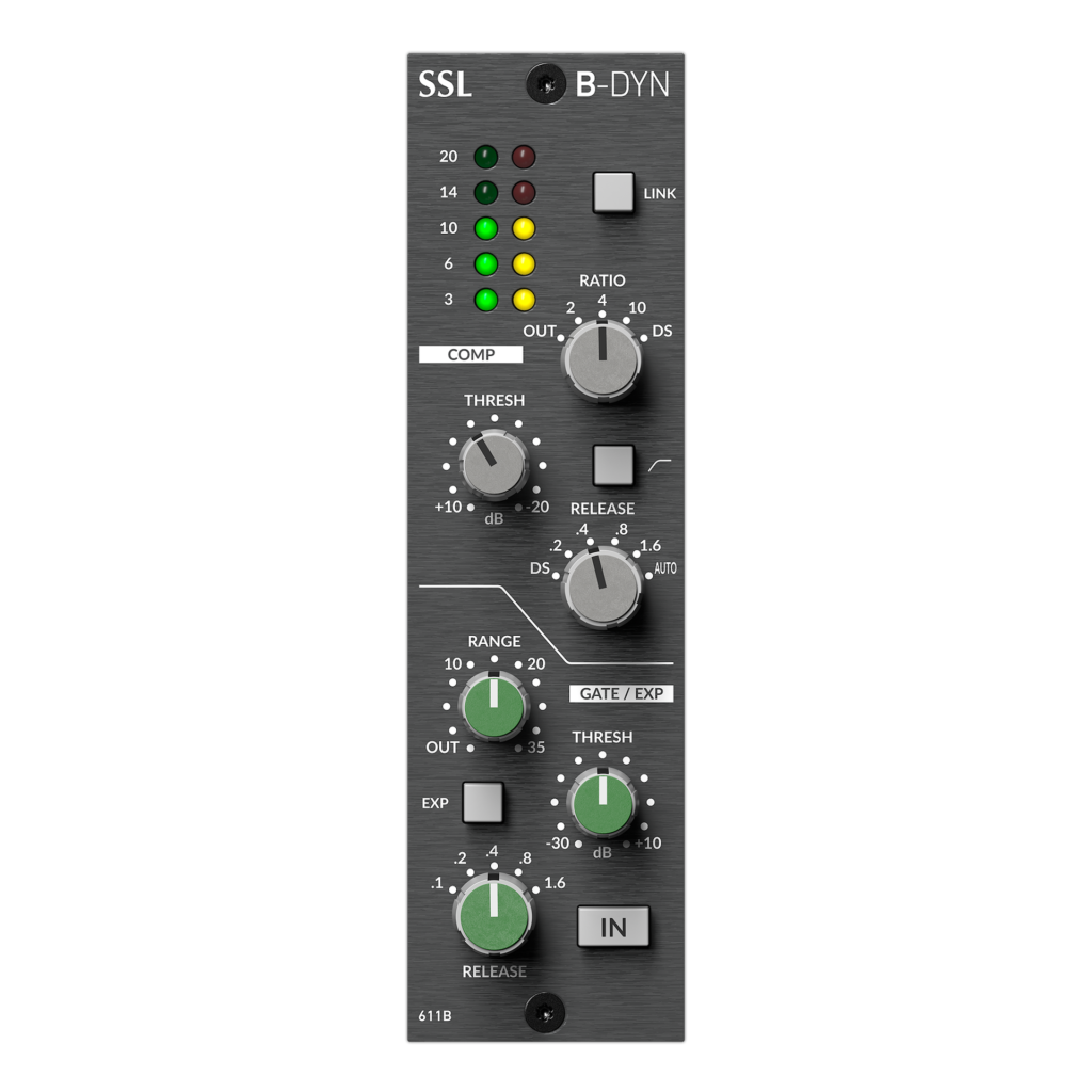 El nuevo módulo B-DYN devuelve el sonido SSL a sus raíces una vez más, con una fiel recreación analógica de la sección dinámica de las consolas SL 4000B originales en formato Serie 500