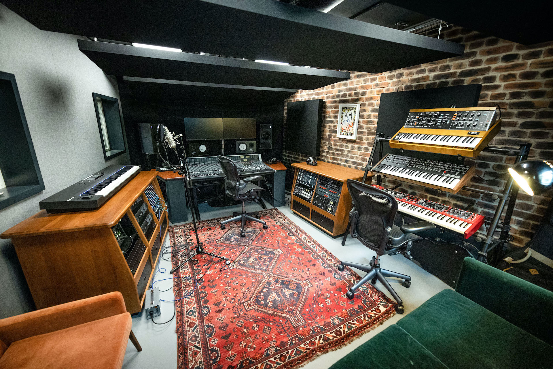 Se adquirió una gran cantidad de muebles antiguos y reciclados para el espacio del salón y los estudios, así como algunos equipos completamente renovados, incluida la consola de mezclas AWS 948 Delta de Solid State Logic. Después de trabajar en varios estudios en Londres durante los últimos 10 años, McWilliams quería crear algo que abordara lo que él veía como las deficiencias de otros espacios de estudio: