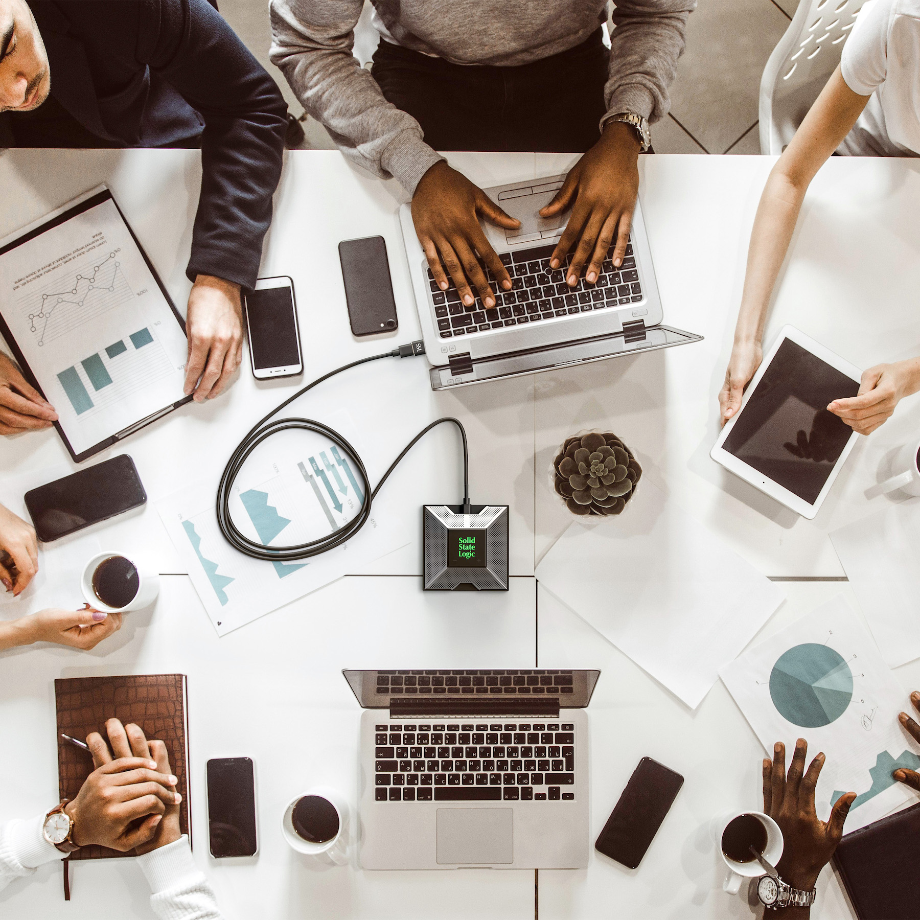 Compatible con tablets equipadas con MAC/PC y USB, SSL CONNEX funciona con las principales plataformas de videoconferencia y no solo es el compañero de audio de alta calidad perfecto para la oficina, trabajar desde casa y videoconferencias remotas, sino que también es adecuado para podcasting, transmisión en vivo o captura de música. Su diseño alimentado por USB significa un gran sonido en casa o en movimiento. Con solo 9cm x 9cm x 4cm, SSL CONNEX se puede utilizar en una superficie plana o se puede montar fácilmente en un brazo de micrófono o soporte de cámara.