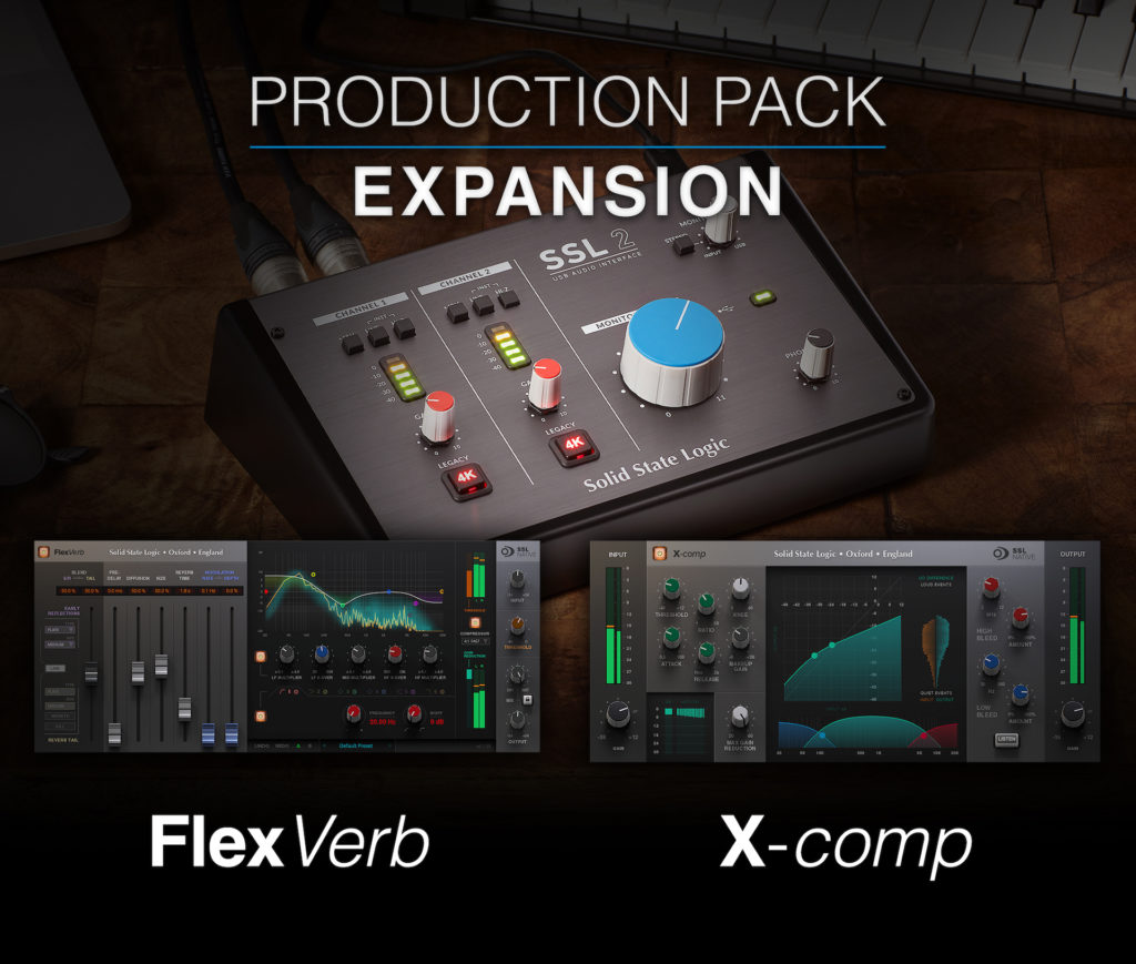 La adición de los plugins nativos FlexVerb y X-comp brindan aún más potencia de producción a las populares interfaces de audio profesionales SSL 2 y SSL 2+
