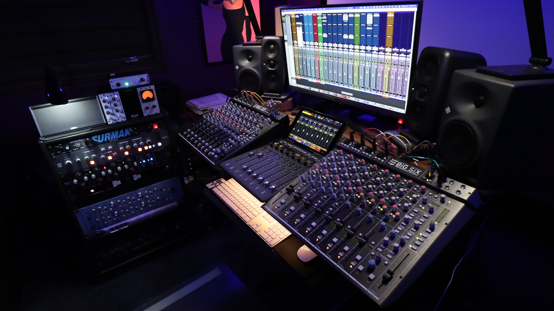 “Pensando en lo que podía hacer, en cuanto a sumar y obtener más señal analógica, pensé en probar una SSL BiG SiX. Me encantó, así que compré dos y las puse juntas”, informa.
