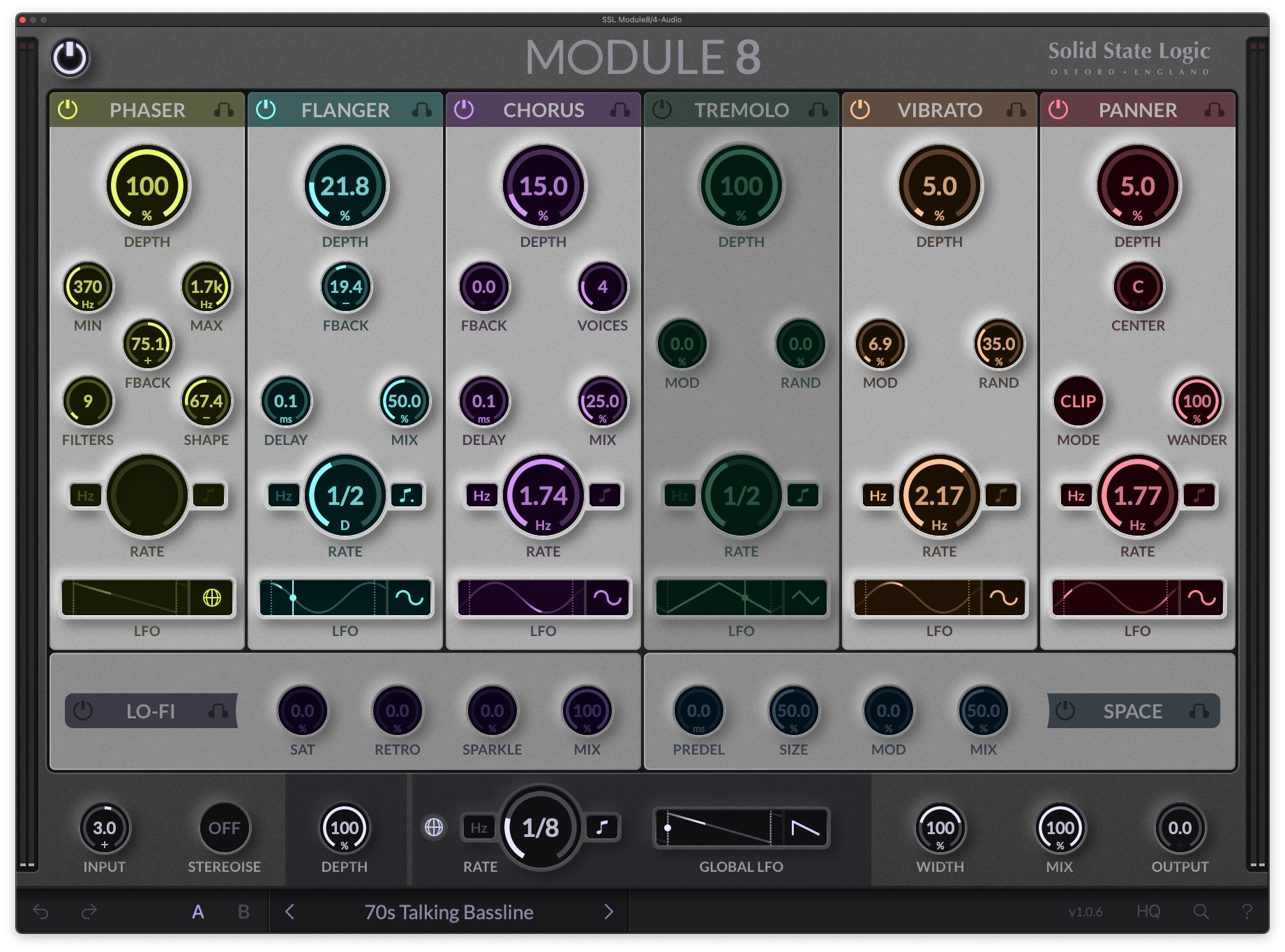 Como última incorporación a SSL Complete, Module8 es un plugin de rack de efectos de modulación todo en uno diseñado para fomentar la creatividad y la exploración del diseño de sonido