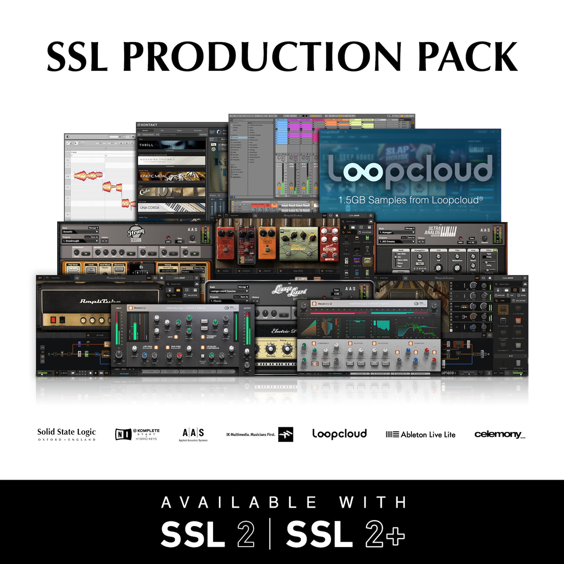 El paquete ahora incluye software de IK Multimedia, Celemony y Applied Acoustic Systems, así como versiones completas de SSL Drumstrip, Vocalstrip 2 y está disponible para propietarios de interfaces SSL nuevas y existentes