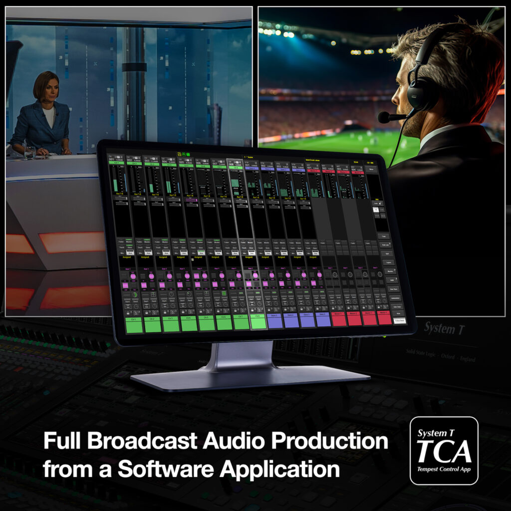 Con un control total de todas las funciones de mezcla, ruteo, monitoreo, configuración y automatización, incluido todo el conjunto de herramientas de producción inmersivas de próxima generación, la nueva aplicación de control Tempest (TCA) de Solid State Logic aporta al mercado un nivel sin precedentes de flexibilidad de producción y adaptabilidad operativa para emisoras de todos los tamaños. TCA es una solución de control robusta y altamente escalable para aplicaciones clave de audio de transmisión, incluida la producción remota, la producción de salas de redacción, escenarios de respaldo o en cualquier lugar donde no se requiera una superficie de control física. TCA utiliza la misma interfaz gráfica de usuario fácil de usar que se encuentra en toda la gama System T, proporcionando a los operadores una experiencia familiar sin importar qué interfaz de control del System T estén utilizando.