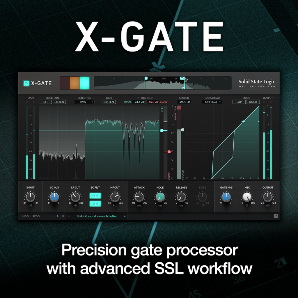 “X-Gate continúa ampliando la oferta de plugins SSL con una herramienta de activación quirúrgica completa pero fácil de usar para aplicaciones de mezcla, en vivo y de transmisión”. comentó Jonathan Sandman, gerente de productos de plugins en SSL. “Rápido, ágil y preciso, se garantiza que X-Gate será su nuevo caballo de batalla para dar forma a la batería y otros instrumentos, agregar fuerza a sus mezclas y corregir de forma transparente las notas fantasma, el ruido o el sangrado de la habitación”.