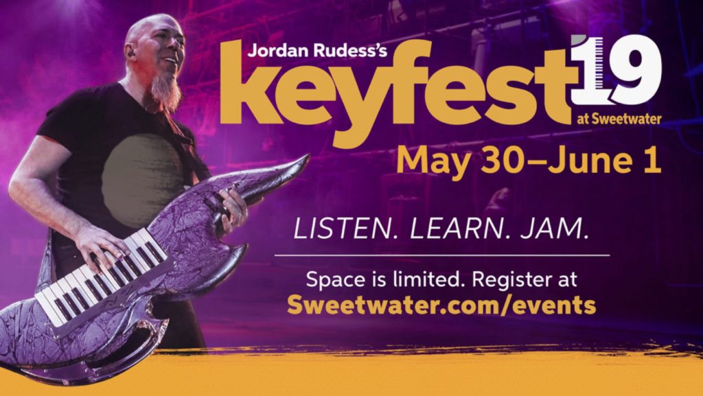 Sweetwater, el minorista en línea para equipos de música número 1 en los EE. UU., será el anfitrión del cuarto Keyfest anual de Jordan Rudess desde el jueves 30 de mayo hasta el sábado 1 de junio en su campus de Fort Wayne, Indiana. El evento cuenta con el tecladista y multi-instrumentista Rudess (Dream Theater), así como con los artistas invitados especiales David Rosenthal (Billy Joel, Cyndi Lauper, Rainbow) y el pianista de jazz latino Otmaro Ruiz (John McLaughlin, John Patitucci).