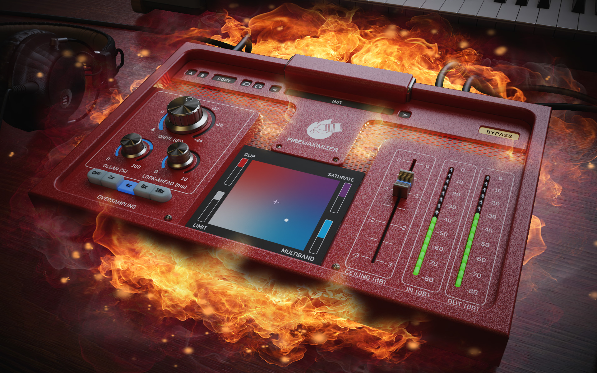 FireMaximizer de FireSonic hace exactamente eso y más al proporcionar algoritmos prístinos de clipper, saturador, limitador y limitador multibanda, lo que permite a los usuarios combinarlos para obtener la proporción exacta de grano y transparencia digital y “analógica” necesarios para satisfacer mejor las necesidades de su bus master, o, de hecho, ¡instrumentos individuales! Gracias a esos algoritmos únicos, FireMaximizer puede adaptar cómodamente la transparencia al brutalismo. Mejor aún, su GUI 3D fotorrealista pero flexible lo hace fácil de operar. De hecho, arrastrar un pad XY hace que se mezcle la proporción entre el CLIP, muy útil para géneros agresivos como metal, drum ‘n’ bass, hip-hop y más; SATURATE: similar al clipping, pero también produce cierta calidez “analógica”; LIMIT: proporciona un limitador clásico brick-wall que es lo más transparente posible, muy útil para géneros menos agresivos donde el usuario no quiere que se altere el espectro y MULTIBAND: una versión multibanda del limitador brick-wall que realiza la limitación en partes separadas del espectro, por lo que potencialmente extrae más volumen y principalmente lo aplana de forma natural, lo que lo hace útil para varios géneros, incluido el rock, el pop y más.