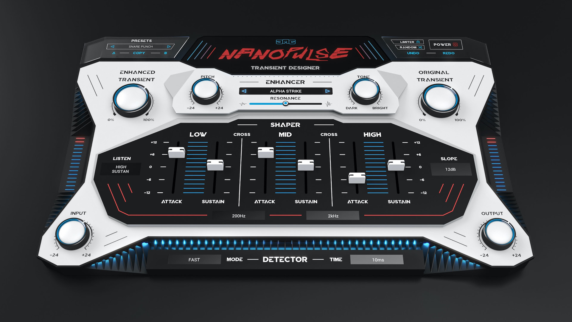 Tratar bien los transitorios significa tratarlos con Nanopulse. No hace falta decir que los transitorios bien tratados agregan potencia y punch a una pista y Nanopulse logra esto como nunca antes al tomar el perfil de otros sonidos de ataque elaborados por expertos y los aplica al transitorio del sonido que se está produciendo, brindándoles una capacidad asombrosa para transformar el carácter de ese transitorio o reemplazarlo por completo.