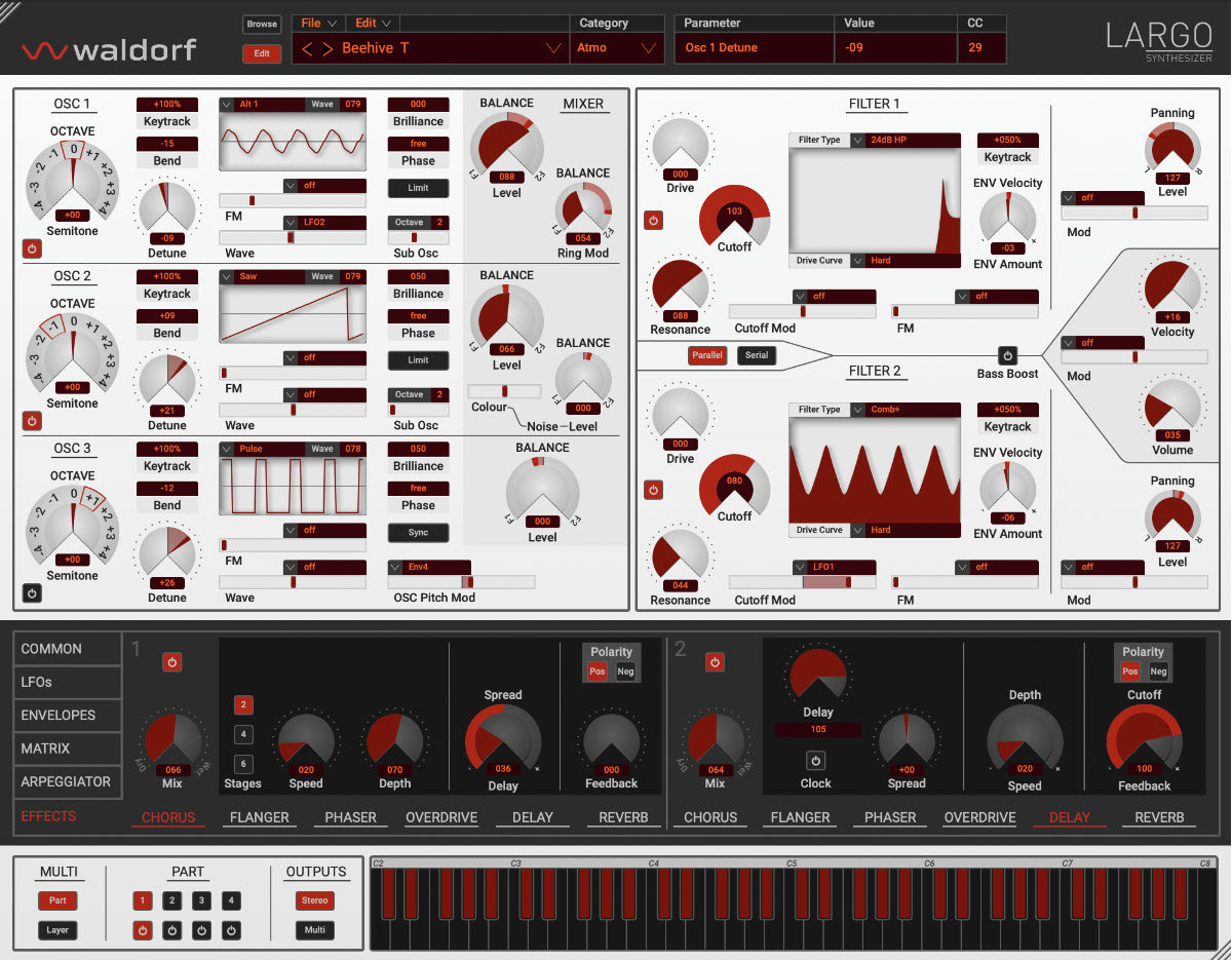 Waldorf Music lanza el popular y potente sintetizador de software Largo con una nueva apariencia y una interfaz de usuario escalable como Largo 2. Un sintetizador Waldorf completo para el rack virtual.