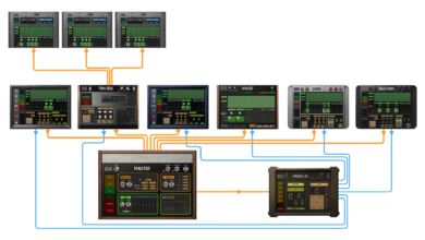 Para la primera gira mundial de Ellish, ya agotada, el ingeniero de FOH, Drew Thornton, eligió los plug-ins de Waves para dar forma al sonido en vivo del cantante: “Tengo una Allen y Heath dLive S5000 con una caja de escenario DM64,” describe su configuración, “y la tarjeta de red de audio Waves V3 (M-DL-WAVES3) instalada localmente en la superficie, con dos servidores Waves SoundGrid Extreme configurados para redundancia. Luego uso dos Mac mini de Apple, uno que ejecuta el rack de plug-ins en vivo Waves MultiRack y otro designado para grabación multipista.”