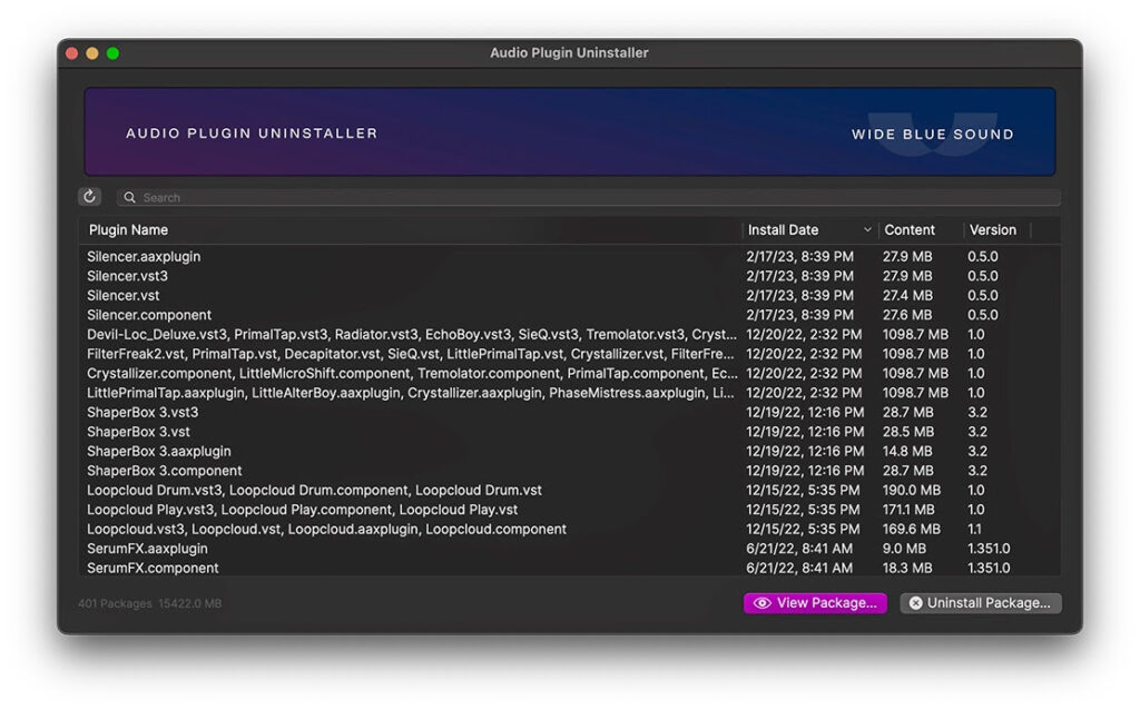 Tras un reciente lanzamiento, el creador de herramientas musicales inspiradoras, Wide Blue Sound, anunció la disponibilidad de la actualización v1.1 de su AUDIO PLUGIN UNINSTALLER, que se explica por sí mismo, elogiado por su disponibilidad inicial como la forma más fácil de desinstalar plugins de audio en una Mac. Actua como una solución sencilla para la administración de plugins y ahora incluye varias características nuevas importantes que lo convierten en una propuesta aún más atractiva para los creadores de música basados en Mac.