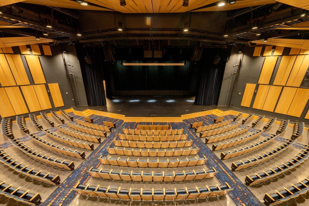 Sergio Molho, Gerente de Proyecto / Diseñador de Sistemas de WSDG, informa que el teatro rediseñado fue concebido como un lugar de usos múltiples capaz de facilitar espectáculos teatrales en vivo, conciertos y conferencias, así como proyecciones de películas y videos educativos en pantallas de proyección colgadas del techo y montadas frente al escenario. El proyecto se completó en la primavera de 2023 y rápidamente se ha ganado su lugar como punto focal para las actividades del campus y la comunidad.